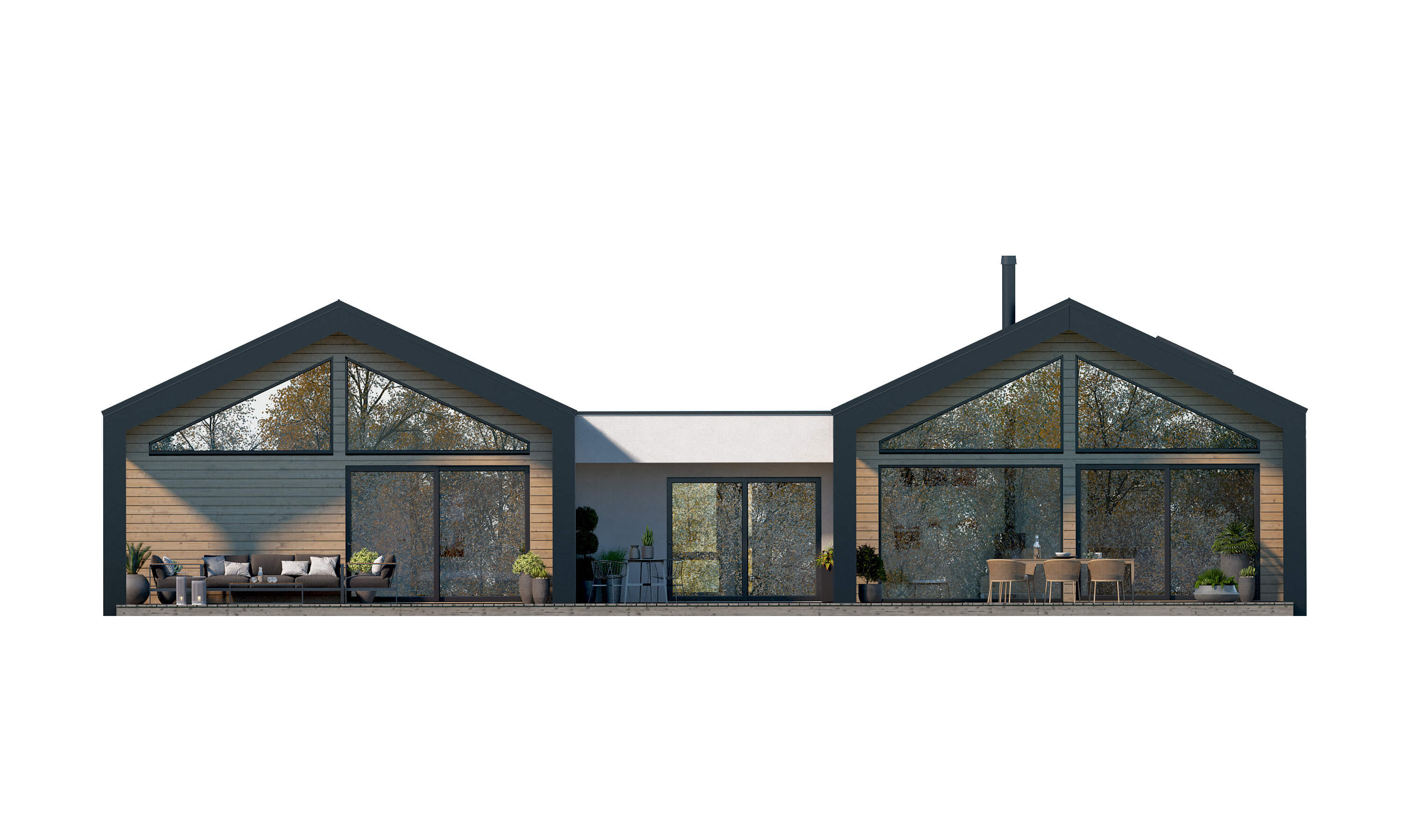 Vega har alt du trenger på ett plan. Med storslåtte vinduer som strekker seg fra gulv til tak, inviteres de naturlige omgivelsene inn i stua og skaper en følelse av åpenhet.