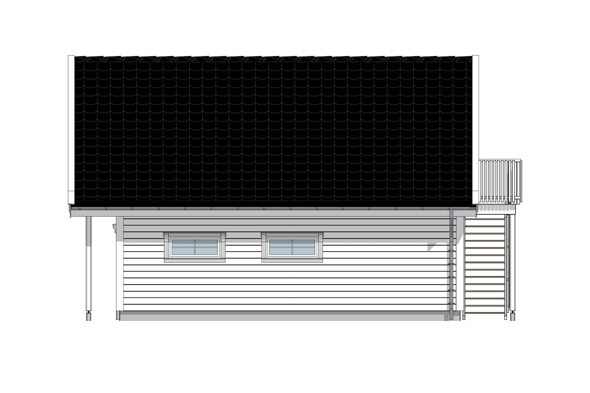En utendørs trapp tar deg opp til garasjeloftet. En praktisk stue/lagerrom hvor ungdommene kan ha det hyggelig sammen, eller som du kan benytte som hobbyrom eller lager.