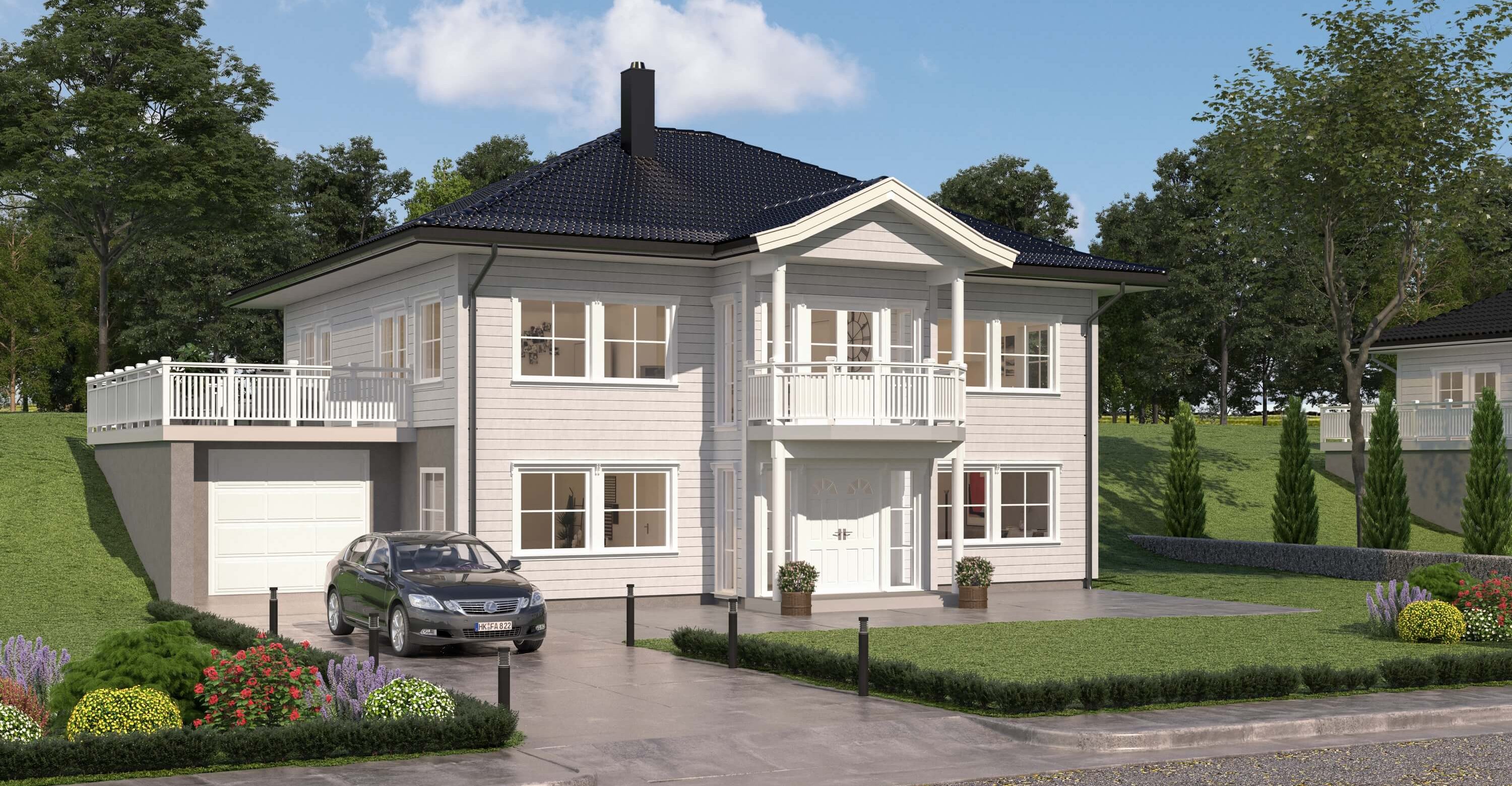 Estoril er en villa med tidløs eleganse. Smarte planløsninger, store rom og en elegant og herskapelig fasade.