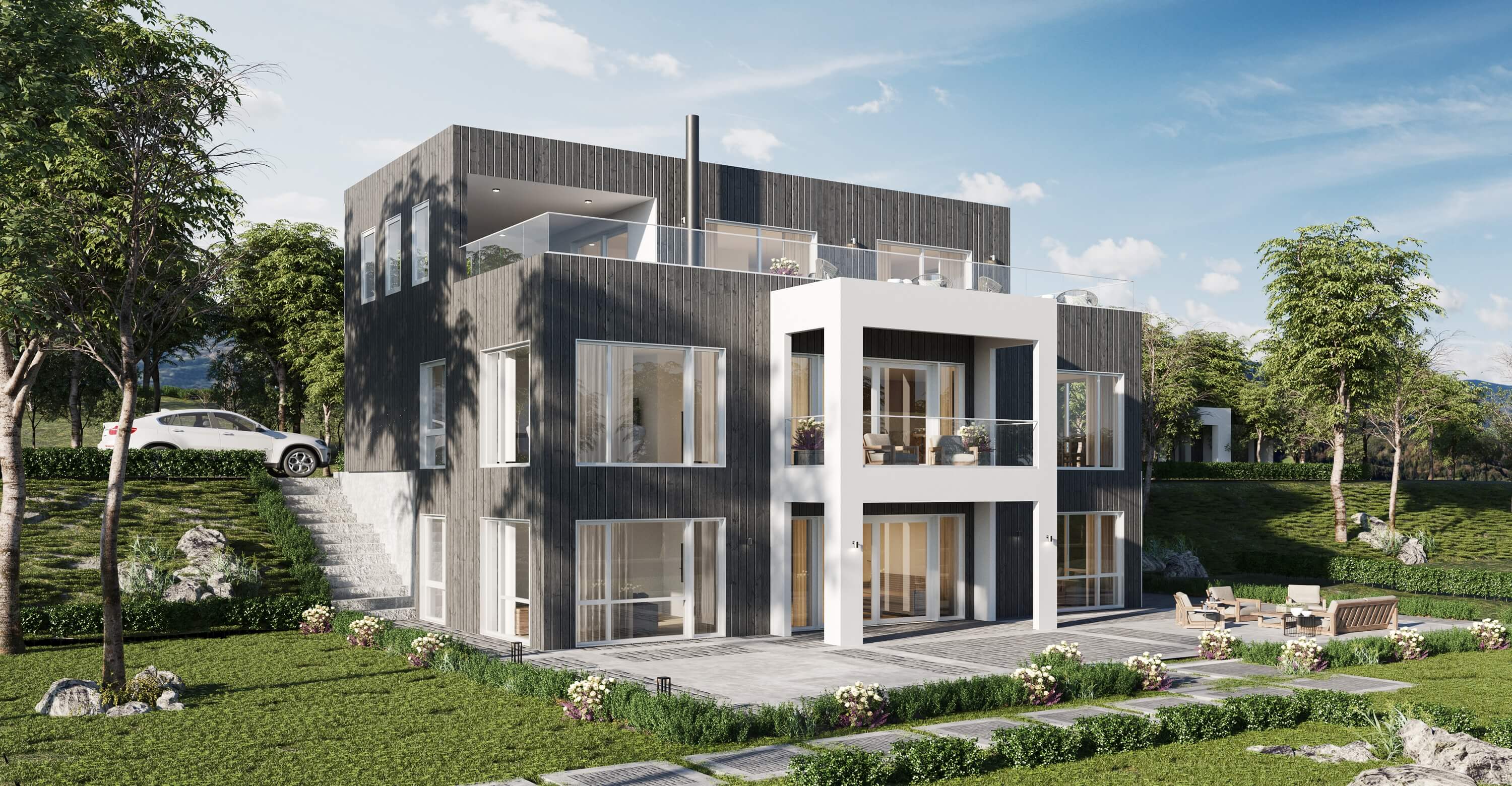 Sirius har et funkisinspirert ytre med store vindusflater, stående kledning og fasadeplater for kontrast. Boligen har en stor takterrasse og stuer i alle etasjer.
