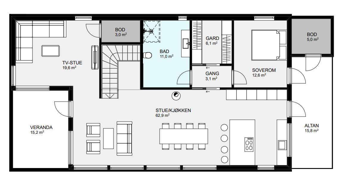Dette er en bolig som vokser med familien, hvor man kan benytte utleiedel til eget bruk dersom man har behov for litt ekstra plass.
